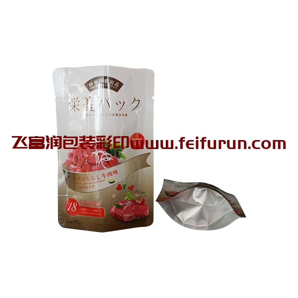 【飛富潤】之寵物濕糧鋁箔自立袋 2020/09/25 寵物食品包裝袋 自立吸嘴袋 鋁箔袋 2772 0產品特性:良好的熱封效果、防潮、耐高溫、耐低溫冷凍、遮光、保香、無菌、無毒、無氣味產品名稱:鋁箔自立袋應用范圍:鋁箔自立袋是指底部有水平支撐可以站立的軟包裝袋,鋁箔自立袋是一種相對新穎的包裝形式,在提升產品檔次、強化貨架視覺效果、攜帶輕便、使用便利、保鮮和可密封性等諸多優勢。鋁箔材料:NY/AL/PE、PET/AL/PE、PET/AL/NY/PE印刷工藝:9色高數凹版印刷生產要求:可按客戶要求進行制版印刷包裝袋型:可生產鋁箔、自立袋袋、拉鏈自立袋、三邊封、八邊封等