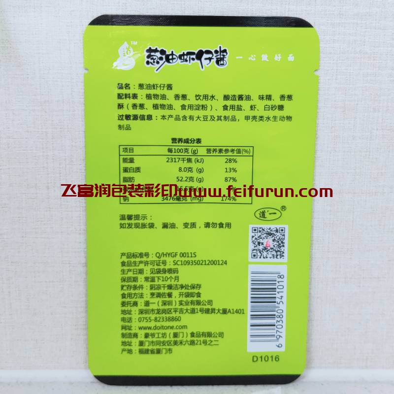 產品名稱:蔥油蝦仔醬高溫蒸煮袋