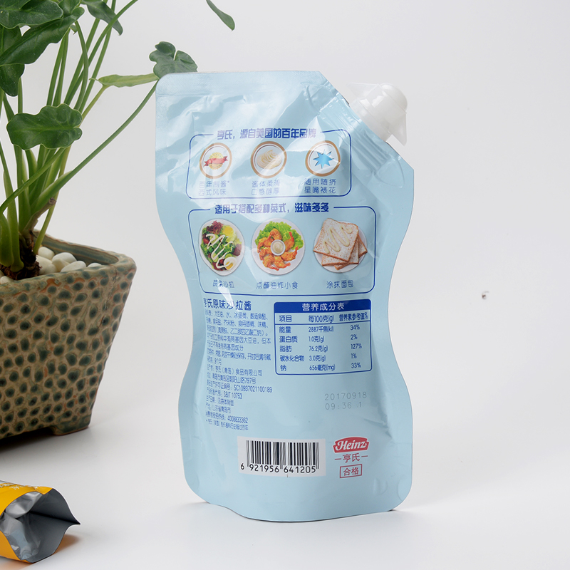 【飛富潤】沙拉自立吸嘴袋 2020/09/04 自立吸嘴袋 鋁箔袋 2674 0材質(zhì):PET/AL/PA/RCPP復(fù)合產(chǎn)品特點(diǎn):具有透明五毒無味密封性好防污保鮮延長保質(zhì)期等作用適用范圍:干貨冷藏食品休閑食品水果蔬菜藥品肉制品等各種食品包裝